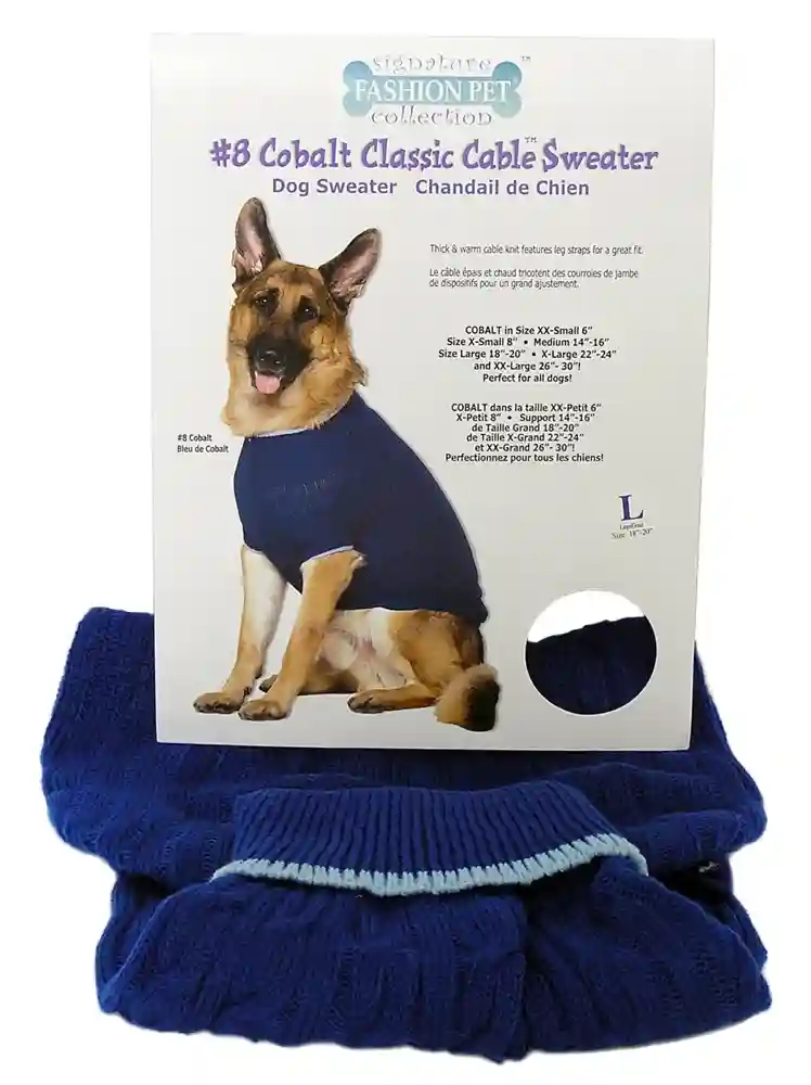 Fashion Pet Classic Cable Sweater Blue LG