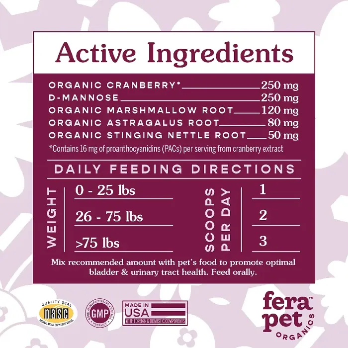 Fera Pet Organics Bladder Support Powder For Dog And Cats - Chicken Flavor - 2.16-oz