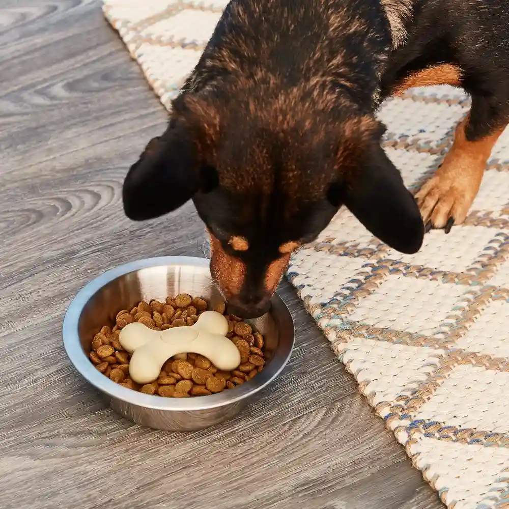 Turn any bowl into a slow feeder with Gobble Stopper by Loving Pets. Gobble Stopper effectively slows down feeding by as much as 500%! Gobble Stopper helps stop the gulping of food, thus avoiding vomiting, choking and bloating - the #2 health risk for dogs. The unique canopy design forces dogs to eat underneath. Simply Stick the suction cup to the bowl of your choice and see your dog eat slower!