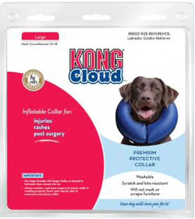 Help your cat or dog recover peacefully—no shame required—with the KONG Cloud Collar. Designed for dogs or cats healing from surgery, rashes or wounds, this recovery collar is soft and comfortable to wear, unlike traditional plastic collars. Best of all, it doesn’t interfere with your pet's peripheral vision or their ability to eat and drink. So, your pal can recover without the additional discomfort. It's scratch- and bite-resistant, which can accelerate healing, and machine-washable fabric makes it easier on you, too! Recovery can be difficult, but you can make it comfortable for your pet with the KONG Cloud Collar.