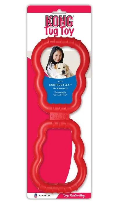 KONG Tug Toy encourages interactive play sessions. The Tug Toy is made with natural KONG rubber, that springs back into shape during a game of tug. The comfortable grips make it easy to keep hold during on-going games of tug.* Natural KONG Rubber stretches and recoils for long-lasting fun* Ideal for interactive games of tug* Comfortable grips make grabbing easy for you and your dog* Made in the USA. Globally Sourced Materials.