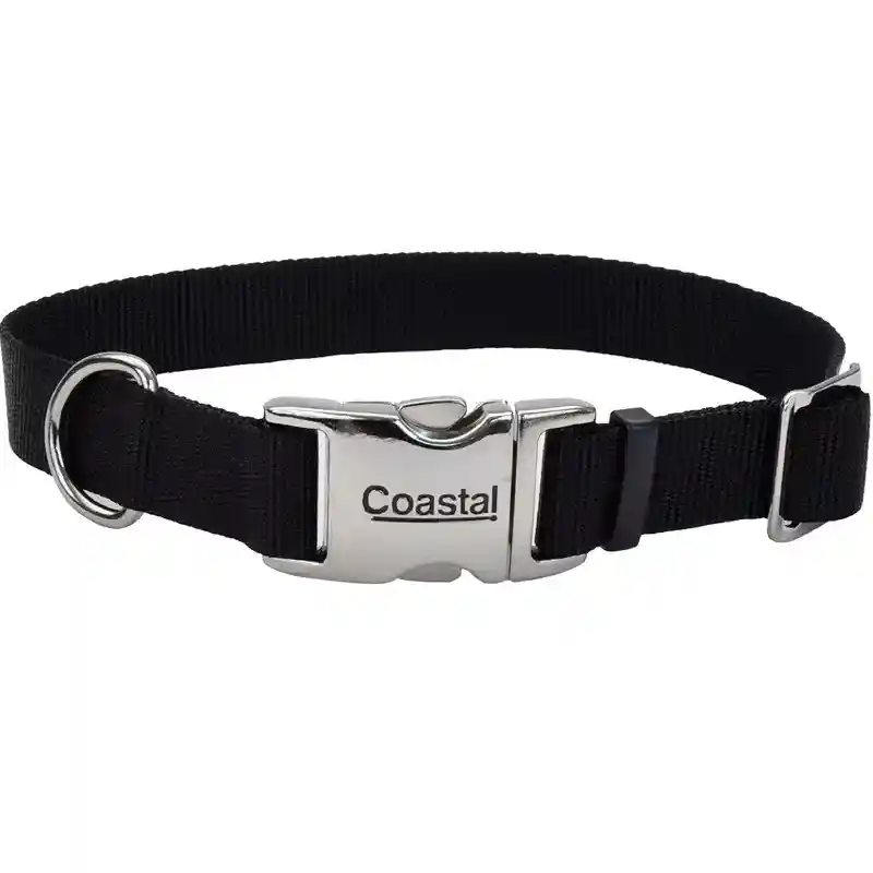 Adjustable Dog Collar With Metal Buckle - Black - 3/4" X 14" - 20"