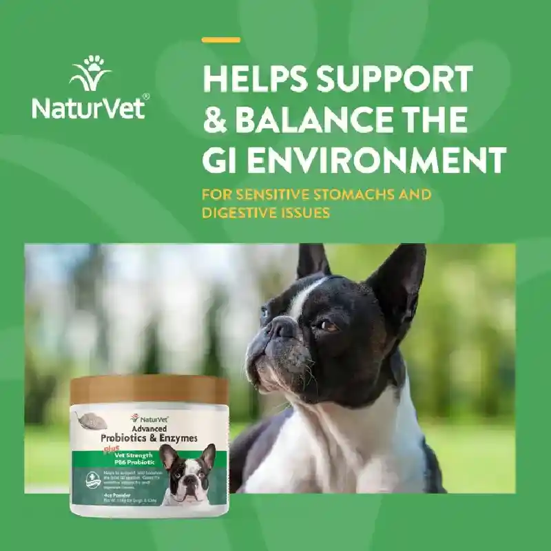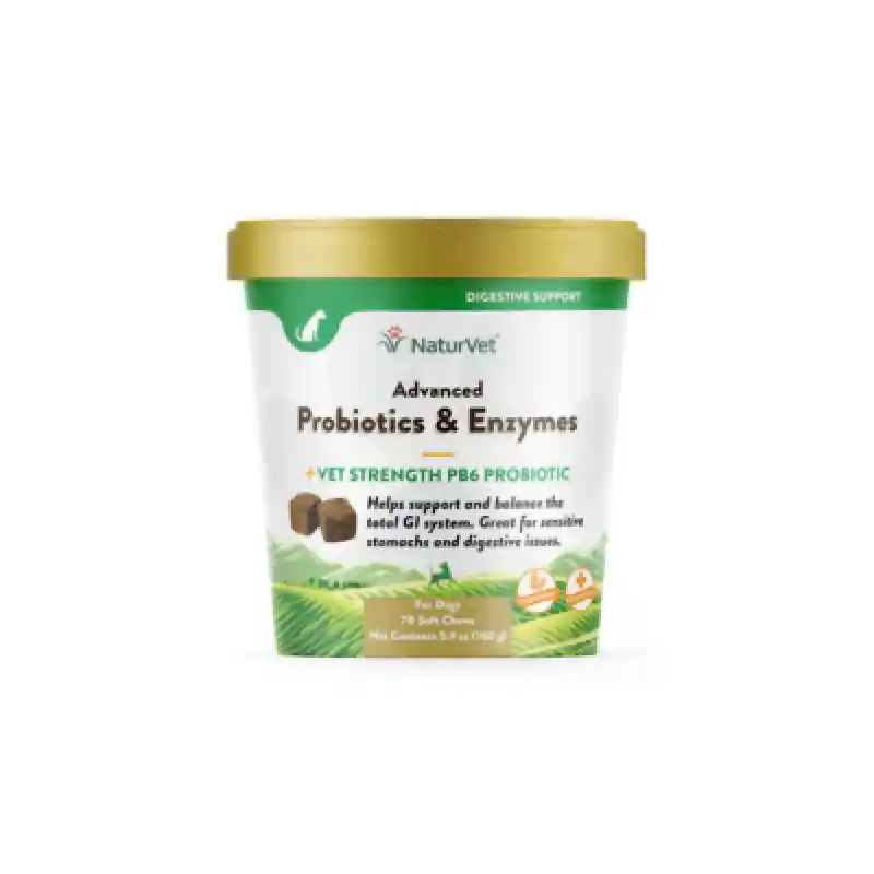 NaturVet Advanced Probiotics & Enzymes Plus Vet Strength PB6 is formulated to support and balance the digestive tract. These Probiotic Dog Soft Chews are great for dogs with sensitive stomachs and digestive issues. The GI tract can become unbalanced from stress, antibiotics, a weakened immune system or even dietary issues. NaturVet’s Advanced Probiotics & Enzymes chews have a special blend of probiotics, including veterinary-strength PB6, which helps support good bacteria in the gut. This leads to a balanced and healthy GI tract and normal stool quality. This supplement comes in the form of a bite-size chew that you can give to your pup like you would any treat.