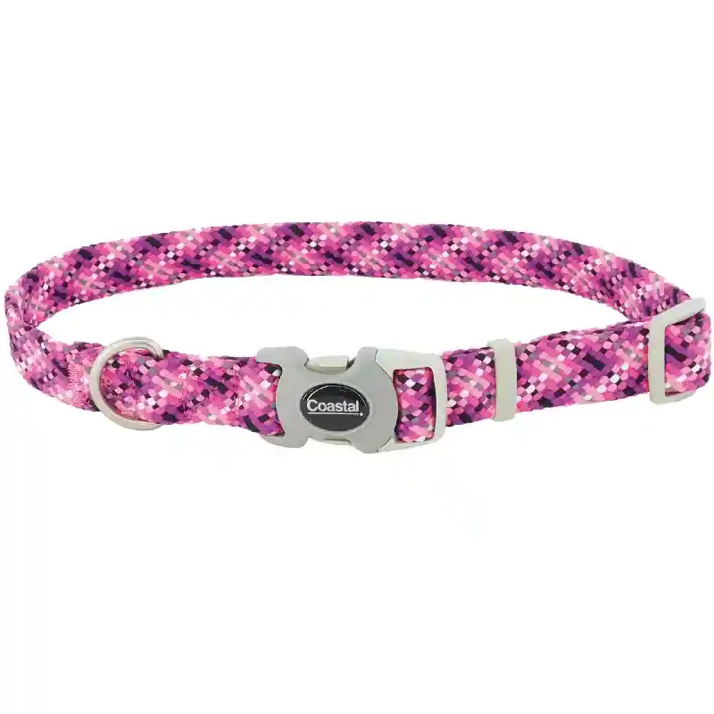 Pro Active Adjustable Woven Reflective Dog Collar Pixel Pink 5/8 X 8-12-in