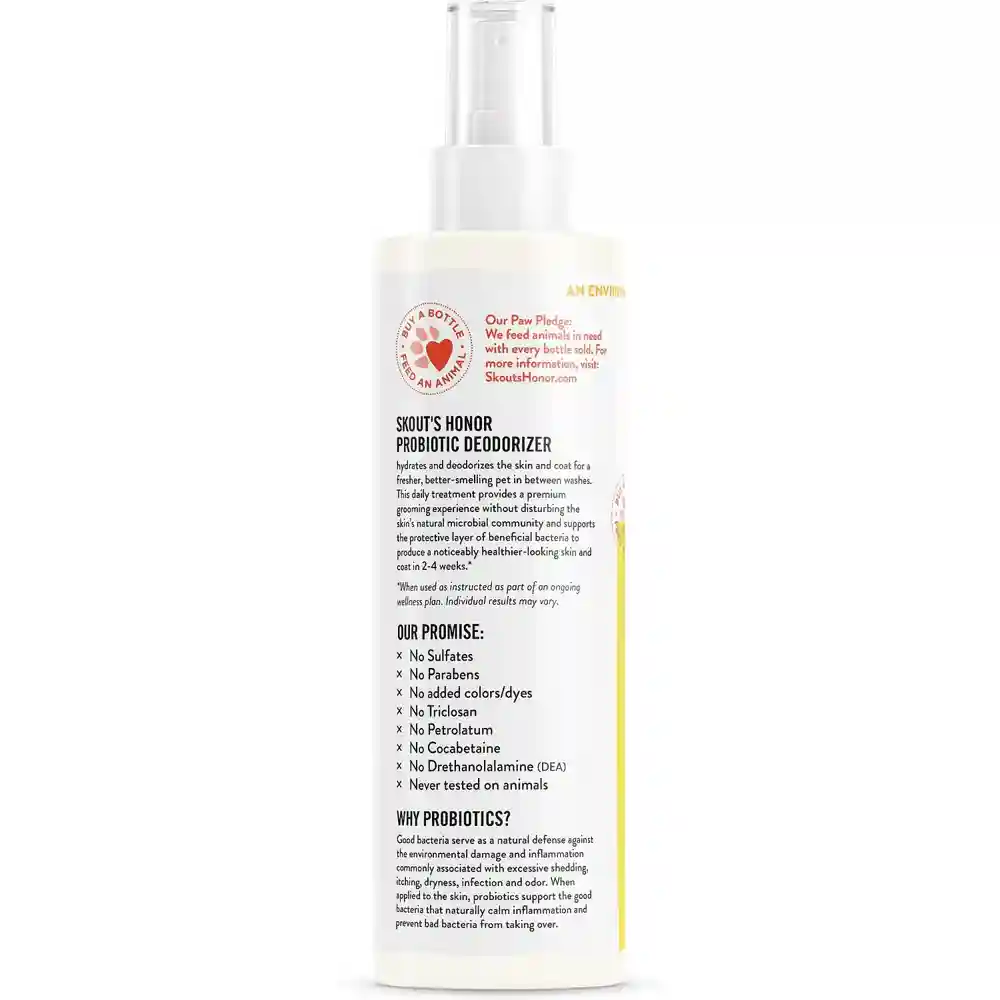 Gently nourish your furry friend’s skin and naturally remove odors with Skout’s Honor Probiotic Honeysuckle Daily Use Pet Deodorizer! This probiotic spray formula is specially made with avocado oil and is designed to improve your pet’s skin and coat by combating shedding, dryness, itching, hot spots and especially that unwanted odor! This 98.5% natural daily deodorizer is paraben-free and sulfate-free, PH-balanced for dogs and contains conditioning omega-3s that hydrate and deodorize skin for a natural and neutral scent. Restore the balance back into your pal’s skin and coat the eco-friendly way with Skout’s Honor!
