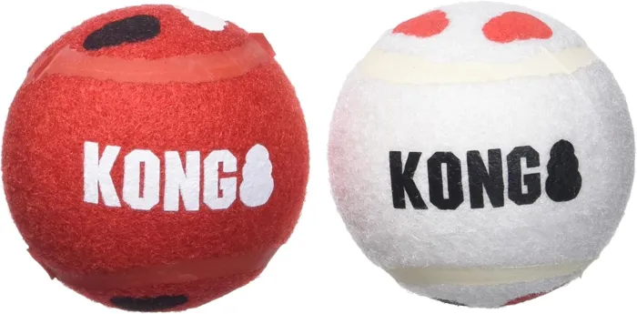KONG Signature Sport Balls extra-thick rubber walls and dynamic bounce deliver long-lasting fetching fun. Uniquely built for dogs, the non-abrasive felt is gentler . on teeth and gums while satisfying a dogs chase-and-retrieve instincts. These durable balls are built to lastand dont squeak making them ideal for quieter plays sessions