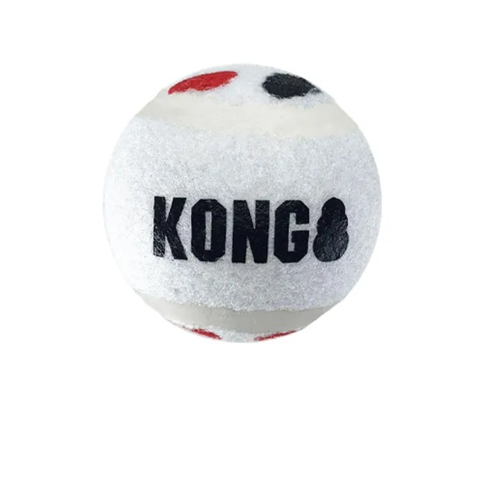 KONG Signature Sport Balls extra-thick rubber walls and dynamic bounce deliver long-lasting fetching fun. Uniquely built for dogs, the non-abrasive felt is gentler . on teeth and gums while satisfying a dogs chase-and-retrieve instincts. These durable balls are built to lastand dont squeak making them ideal for quieter plays sessions