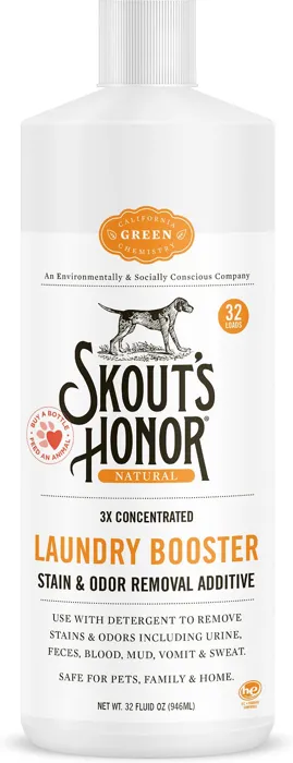 Skout's Honor Laundry Booster is a powerful laundry additive that is specifically designed to remove pet stains and odors from a variety of fabrics, including pet bedding, clothing, washable pee pads, and more. This laundry booster is easy to use - simply add it to your regular detergent to remove tough stains and odors, including urine, feces, blood, mud, vomit, and sweat. With Skout's Honor Laundry Booster, you can keep your pet's belongings clean and fresh-smelling, no matter how dirty they get.