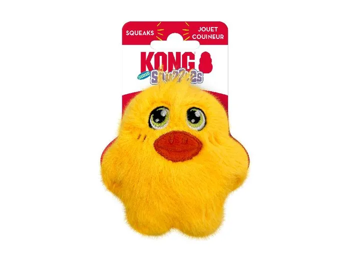KONG Snuzzles Minis are perfect for little dogs who love big noises! This tiny plump toy is perfect for squeaking, carrying, and snuggling. The full-body squeaker creates a dense mouthfeel that entices chewing, gumming, and squishing. Their flat shape and velvety plush exterior make these mini characters easy to grab & perfect for indoor play. Size