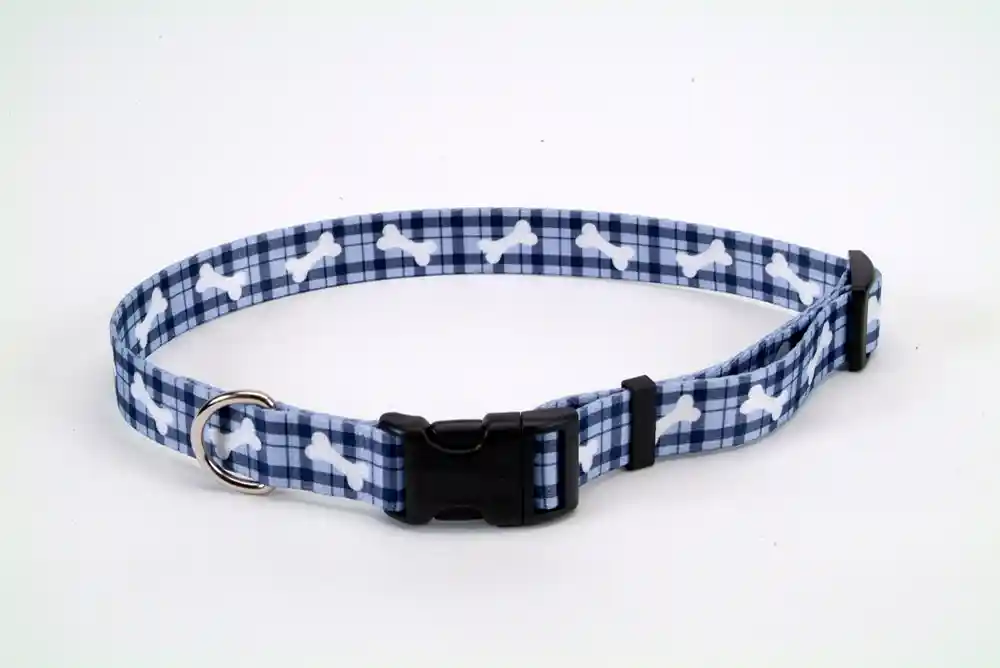 Adjustable Dog Collar Plaid Bones 1" X 18" - 26"