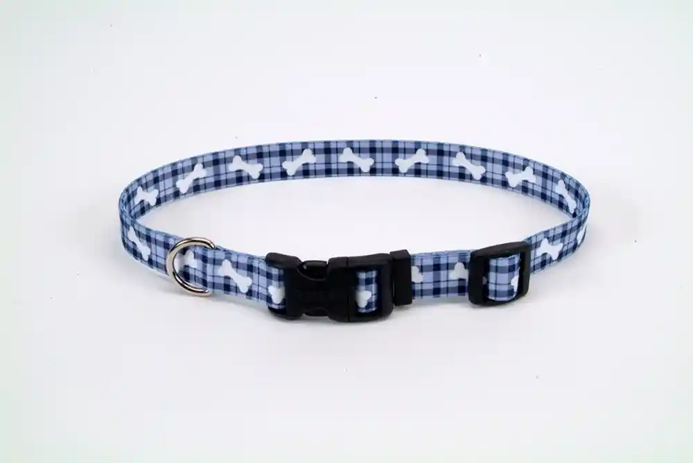 Adjustable Dog Collar Plaid Bones 3/4" X 14 - 20"
