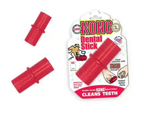 The KONG Dental Stick™ has a fun design that's great for chew sessions and games of fetch alike. Made of the KONG Classic rubber, the toy helps support the natural instinct to chew. The Denta-Ridges™ help clean teeth and gums and can be filled with KONG Easy Treat™ for additional enrichment.