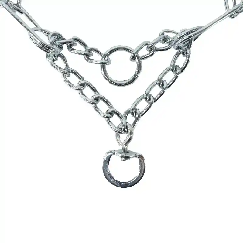The Titan Chain Training Prong Collar is argon welded and chrome plated for maximum strength and durability. It will not tarnish, rust or break. Featuring a link closure style, prong links unfasten for easy collar placement and removal. Extra links and vinyl comfort tips are available. Available in 2.0 mm x 14", 3.0mm x 18", 3.3 mm x 20" and 4.0 mm x 22". Chain training prong collars are safe, effective training tools with proper use. They are not to be used for tie out.