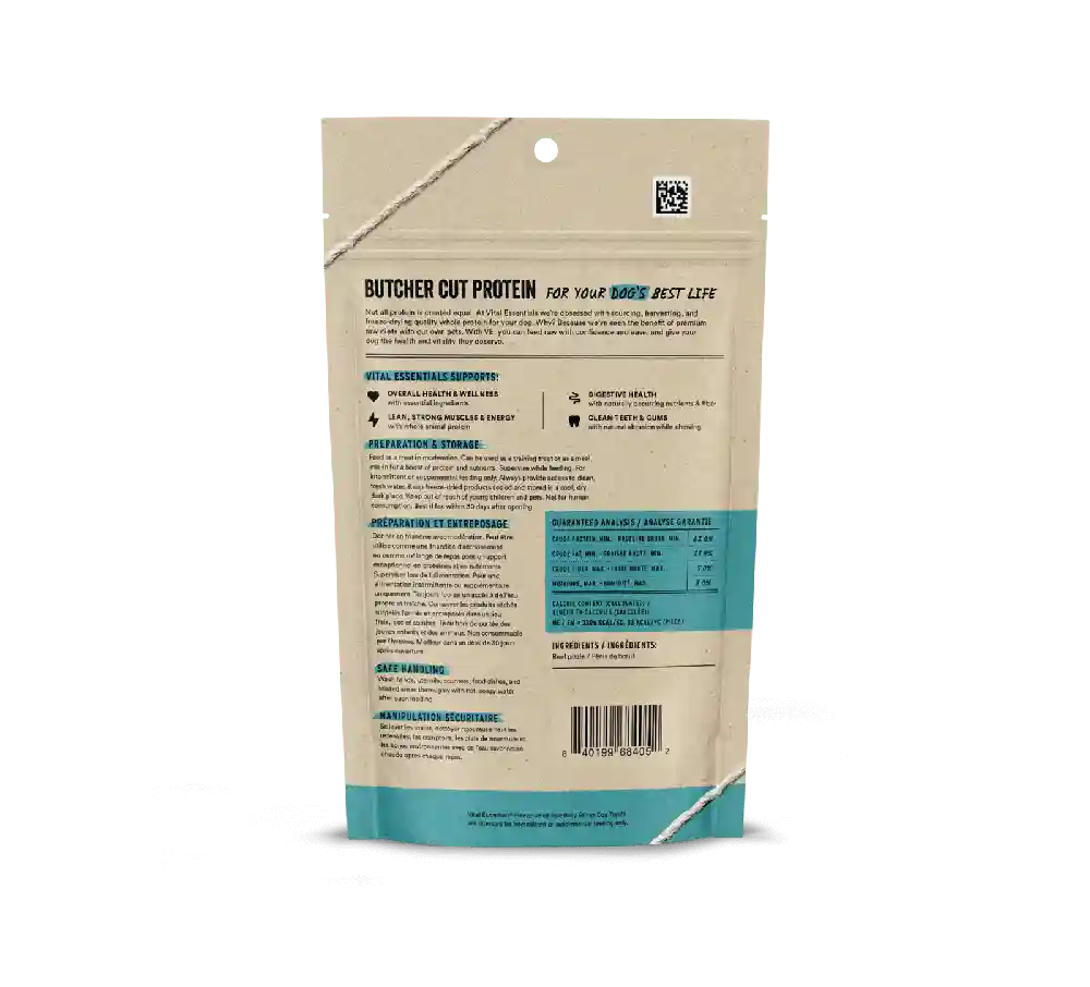 Packed with whole animal butcher cut protein, these high-value freeze-dried treats are full of naturally occurring vitamins and minerals, because your pet deserves the best. Our butcher cut raw protein is the perfect guilt-free treat that also builds strong muscles for more play, naturally supports digestive and oral health, and provides essential nutrients to support your dogs vitality.