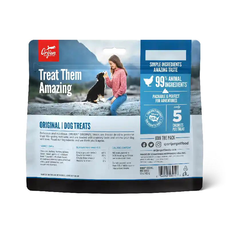 ORIJEN freeze-dried treats are prepared without cooking, so they retain all of the natural goodness of our authentically fresh ingredients.