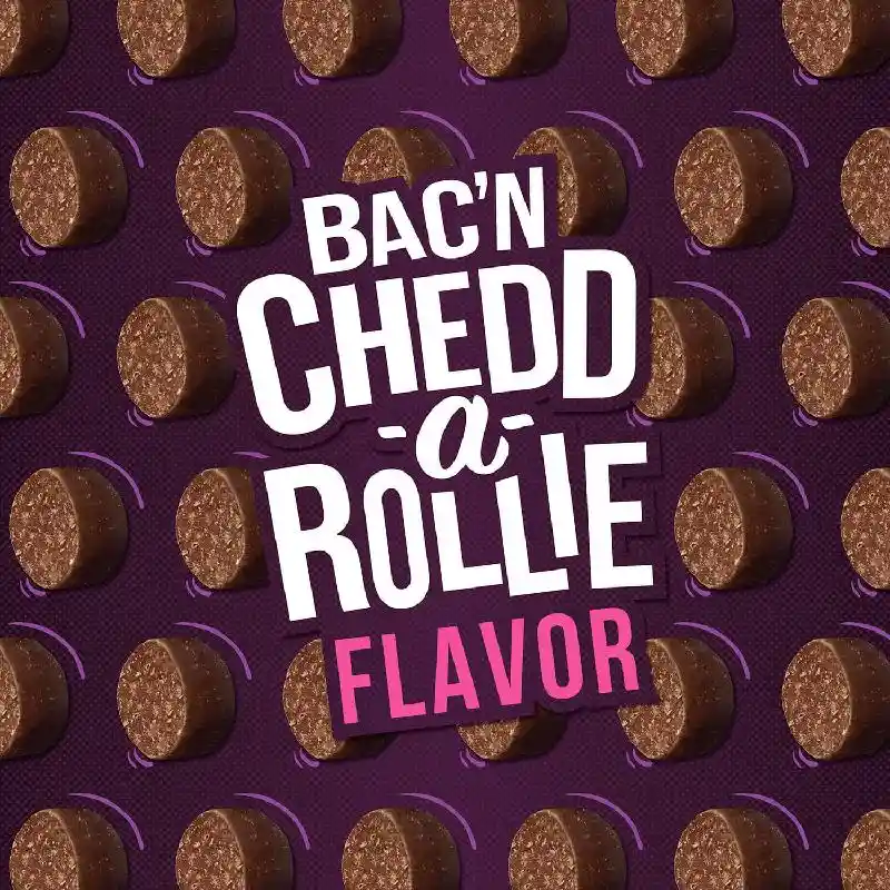 Deliciously tender little rolls of soft, bacon & cheddar goodness that make dogs jump, dance, flip, and anything else they can think of to get attention and get a soft, tasty treat.