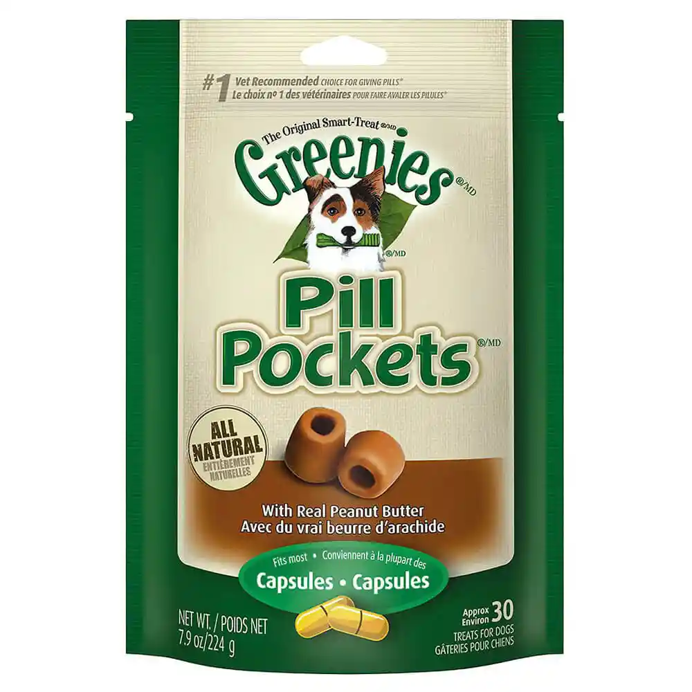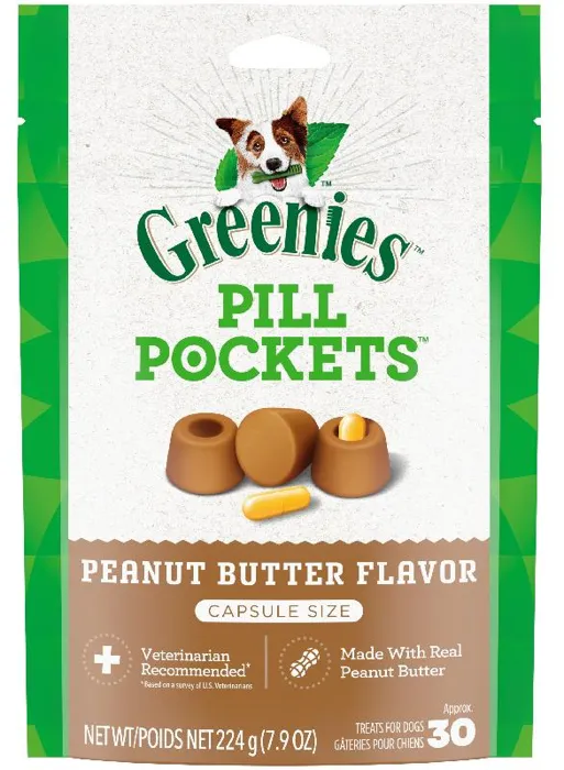 Giving your pup medication no longer has to be a hassle! Greenies Pill Pockets Canine Peanut Butter Dog Treats are the perfect, low calorie way to disguise pills and eliminate the stress of giving your furry companion medicine. Greenies Pill Pockets Canine Peanut Butter Dog Treats mask both the smell and taste of the pills put inside!