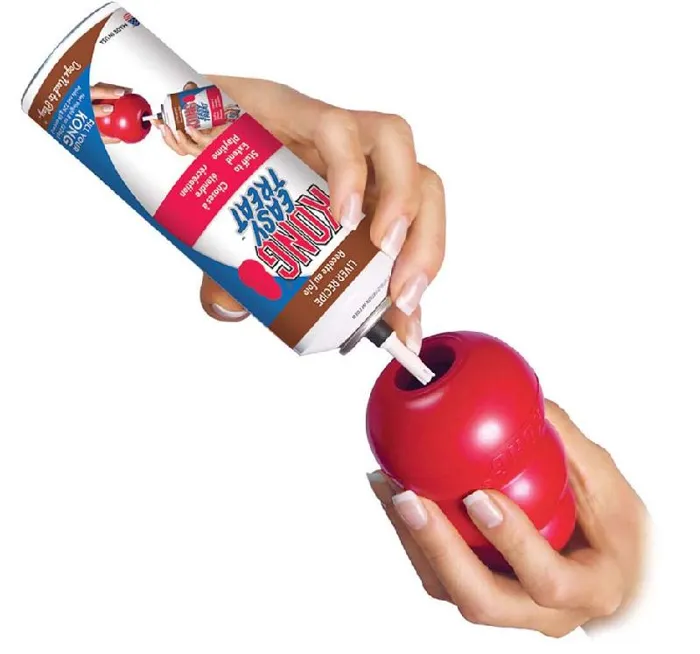 - Easy to dispense straight into your dog’s favorite KONG rubber or dental toys, or as a treat on its own.