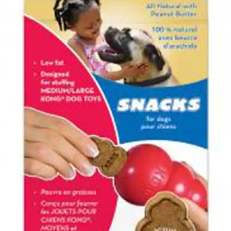 Indulge your playful pal with the irresistible peanut butter flavor most dogs simply can’t resist with the KONG Stuff'N Peanut Butter Snacks Dog Treats. Your pooch will feel pampered with these tasty and nutritious biscuit treats, and you can feel good rewarding him. These all-natural biscuit treats are the perfect shape and size to stuff into any of the KONG rubber toys for hours of lasting and rewarding play. Treat your pal to an anytime treat or use to enhance training.