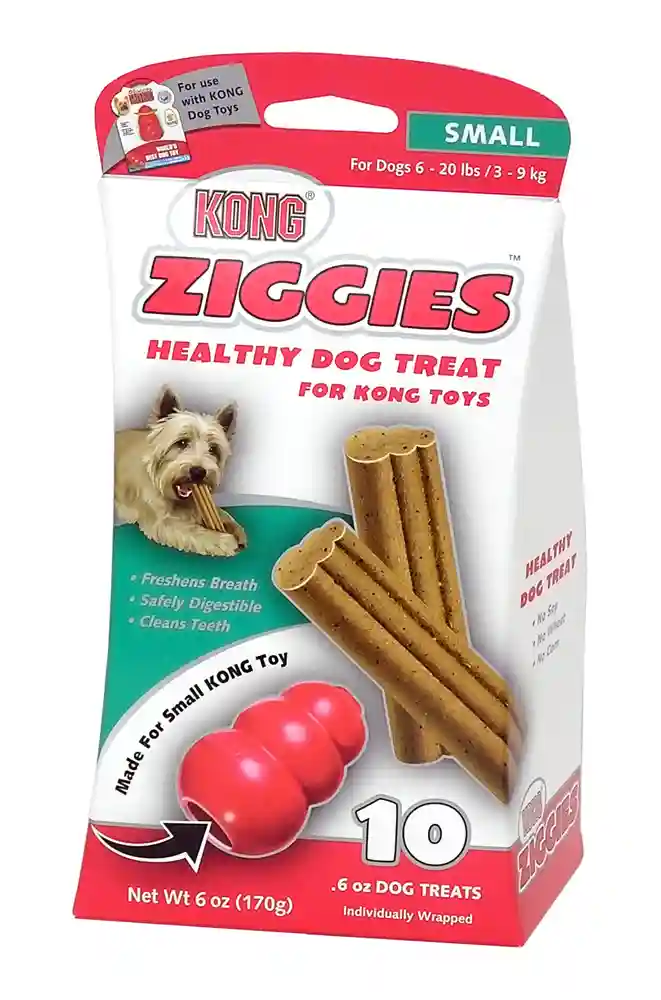 Reward your lovable pal with a healthy, savory, anytime snack, and you’ll be rewarded with fresh breath doggie kisses every time, thanks to the KONG Stuff'N Ziggies Dog Treats. Made with the irresistible chicken flavor dogs love, and designed to freshen breath naturally with rosemary and parsley, these deliciously chewy teeth-cleaning treats help promote dental health, satisfy your pal’s chewing instinct, and make playtime even more rewarding. They’re highly-digestible and safe for anytime snacking, and can be stuffed into his favorite KONG rubber toy for even longer-lasting play.