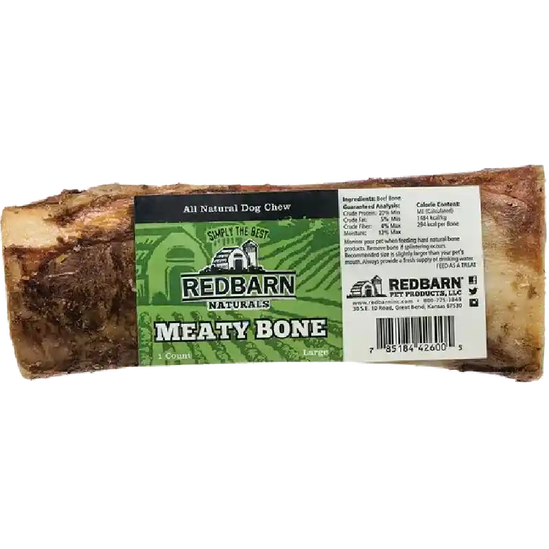 Your dog will go crazy for Redbarn's Meaty Bone, slow roasted to lock in juicy, mouthwatering flavor with each beefy bite. Made with only one ingredient (all-natural beef bone) and free from artificial chemicals, preservatives, flavors, corn or soy, this dog chew is a natural way to help curve boredom and relieve stress. Power chewers will love this bone and it's good for their teeth too, supporting dental health by scraping away at plaque and tartar with each chomp.