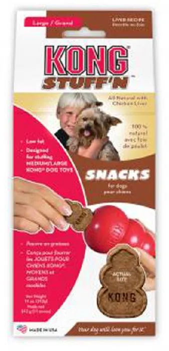Indulge your furry pal with the irresistible liver flavor most dogs simply can’t resist with the KONG Stuff'N Liver Snacks Crunchy Dog Treats. Your pooch will feel pampered with these tasty and nutritious biscuit treats, and you can feel good rewarding him with 100% natural dog biscuits that are free of gluten, wheat, corn or soy, and proudly made in the USA. These all-natural biscuit treats are the perfect shape and size to stuff into any of the KONG rubber toys for hours of lasting and rewarding play. Treat your pal to an anytime treat or use to enhance training.
