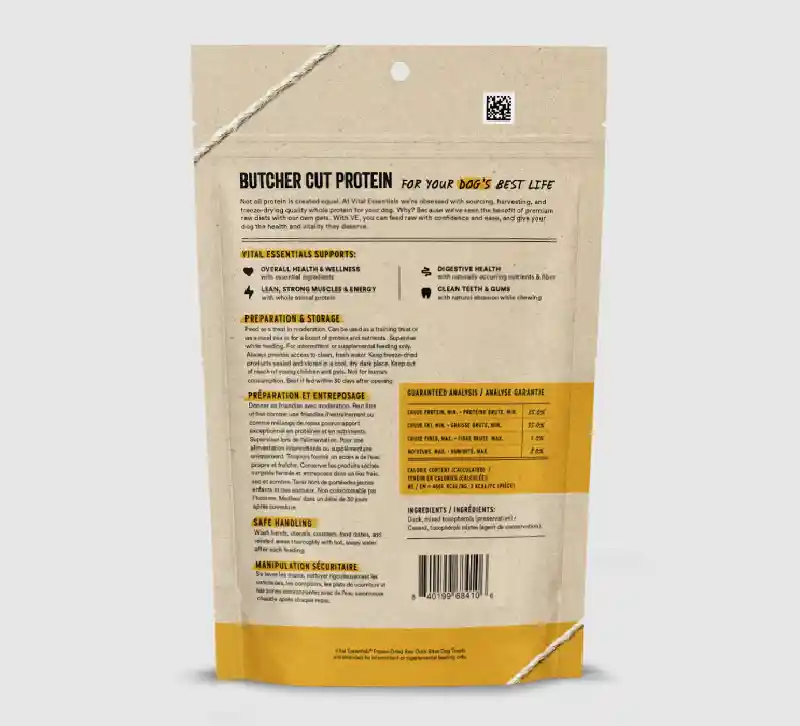 Packed with whole animal butcher cut protein, these high-value freeze-dried treats are full of naturally occurring vitamins and minerals, because your pet deserves the best. Our butcher cut raw protein is the perfect guilt-free treat that also builds strong muscles for more play, naturally supports digestive and oral health, and provides essential nutrients to support your dogs vitality.