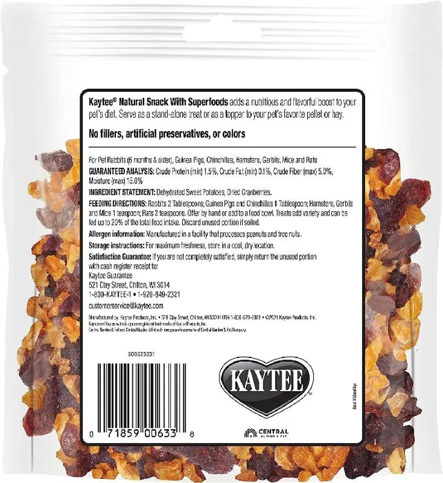 Kaytee Natural Snack w/ Swt Potato & Cranberry 3oz