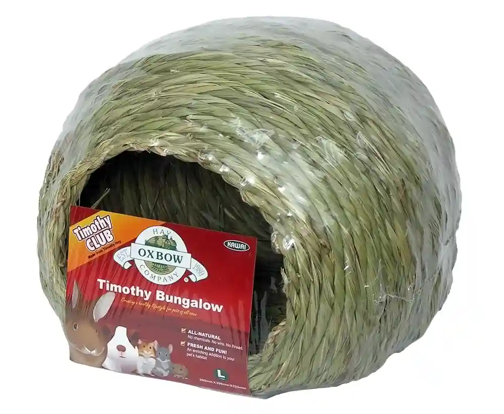 This over-sized, all-grass bungalow offers a safe place to rest and relax inside or outside the habitat. Plus it's completely edible!